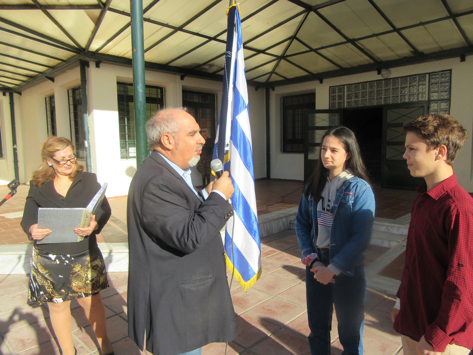 Με εξαιρετική επιτυχία πραγματοποιήθηκε στο σχολείο μας, την Παρασκευή 26 Οκτωβρίου 2018, η εορταστική εκδήλωση για την επέτειο της 28ης Οκτωβρίου 1940 καθώς και για τη γιορτή της Σημαίας. Στα πλαίσια της εκδήλωσης έγινε ο ορισμός σημαιοφόρων και παραστατών για τη φετινή σχολική χρονιά και απονεμήθηκαν αριστεία και βραβεία προόδου στους μαθητές και τις μαθήτριες που διακρίθηκαν κατά το σχολικό έτος 2017-2018.